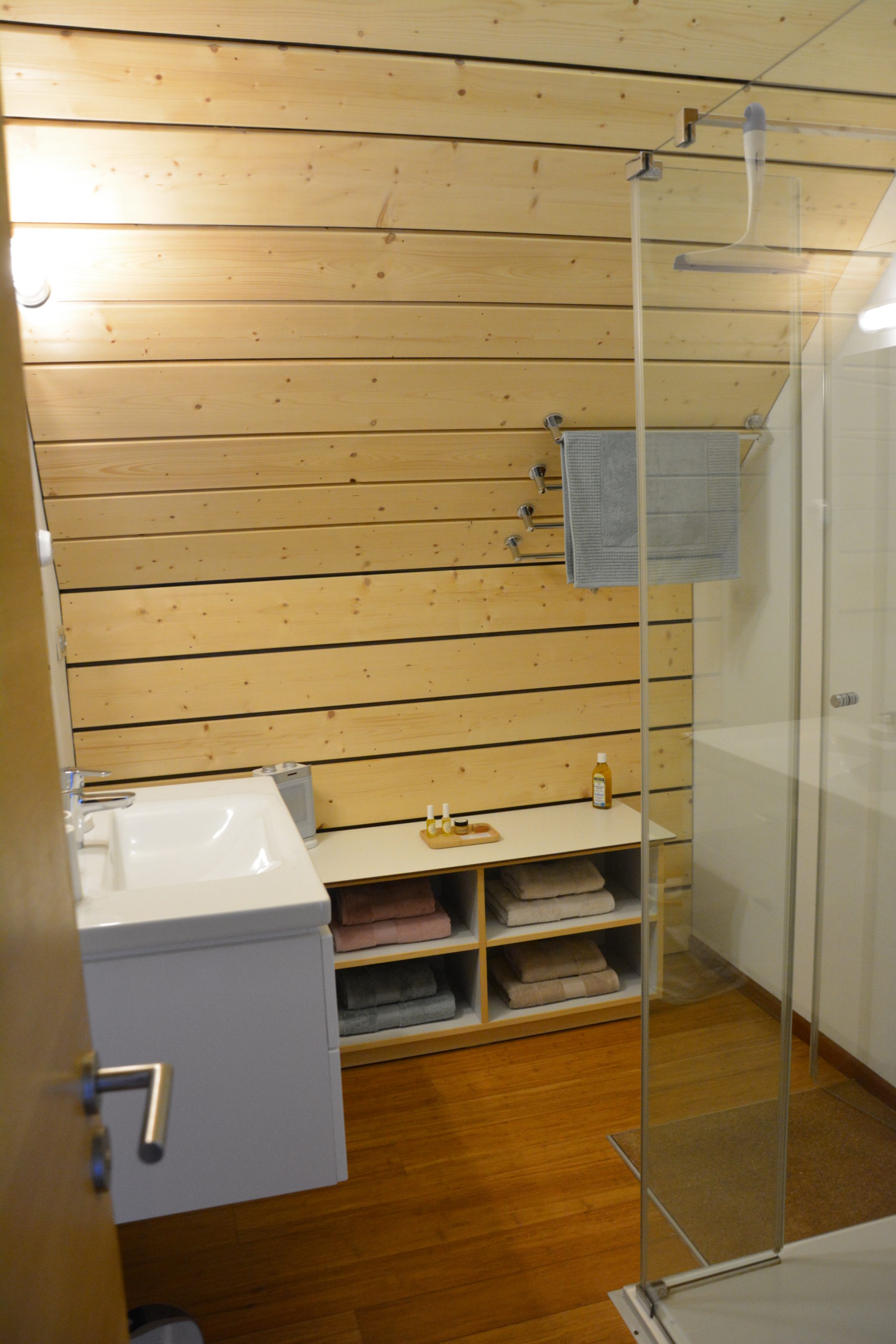 - 🚿 Salle de bains : grande douche à l’italienne, sèche-cheveux, banc de rangement, porte-serviettes